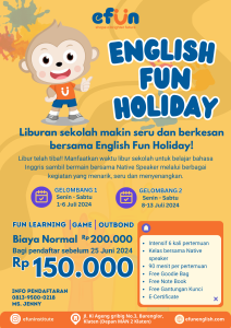 Klaten, 22 Juni 2024 – Liburan sekolah tiba! Saatnya mengisi waktu luang anak dengan kegiatan yang seru dan bermanfaat. EFUN, bimbingan belajar bahasa Inggris ternama di Klaten, menghadirkan English Fun Holiday, program edukasi yang dikemas dengan cara yang menyenangkan dan penuh keceriaan.